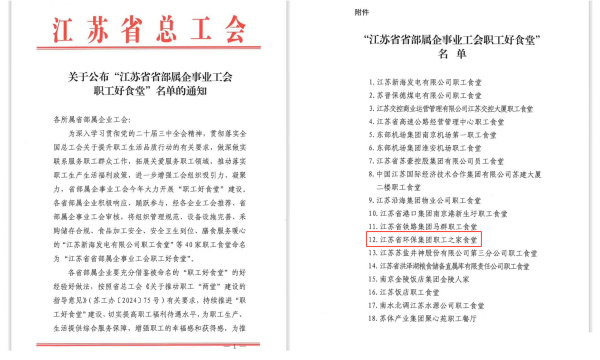 省環保集團“職工之家”榮獲省部屬企事業工會“職工好食堂”